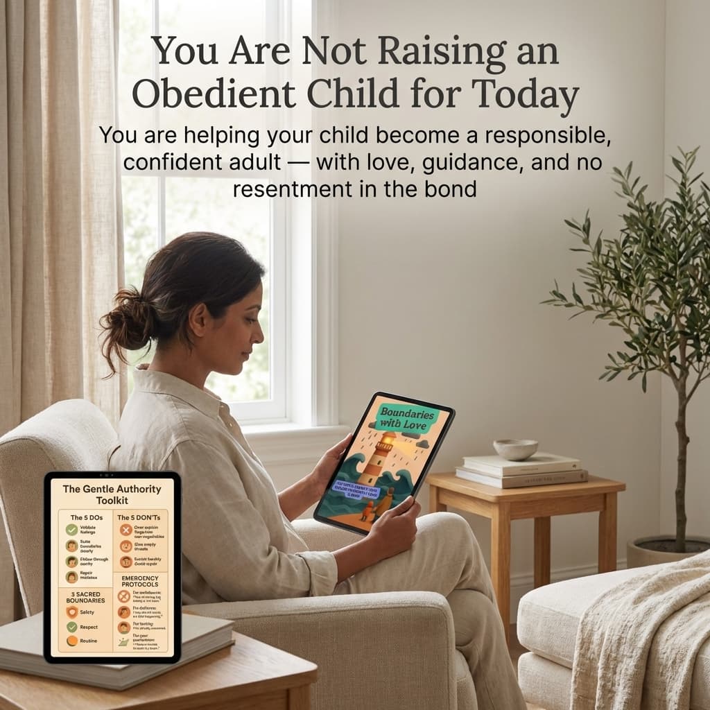 Inside, you will learn how to stop parenting from panic, guilt, over-explaining, or inconsistency — and start parenting with the kind of calm firmness that helps children feel secure.